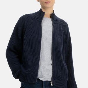 ASKSA Damen Strickjacke Rundhals Cardigan Knopfleiste Pullover Langarm Herbst Winter Grob Gestrickt Outerwear, Dunkelblau, S