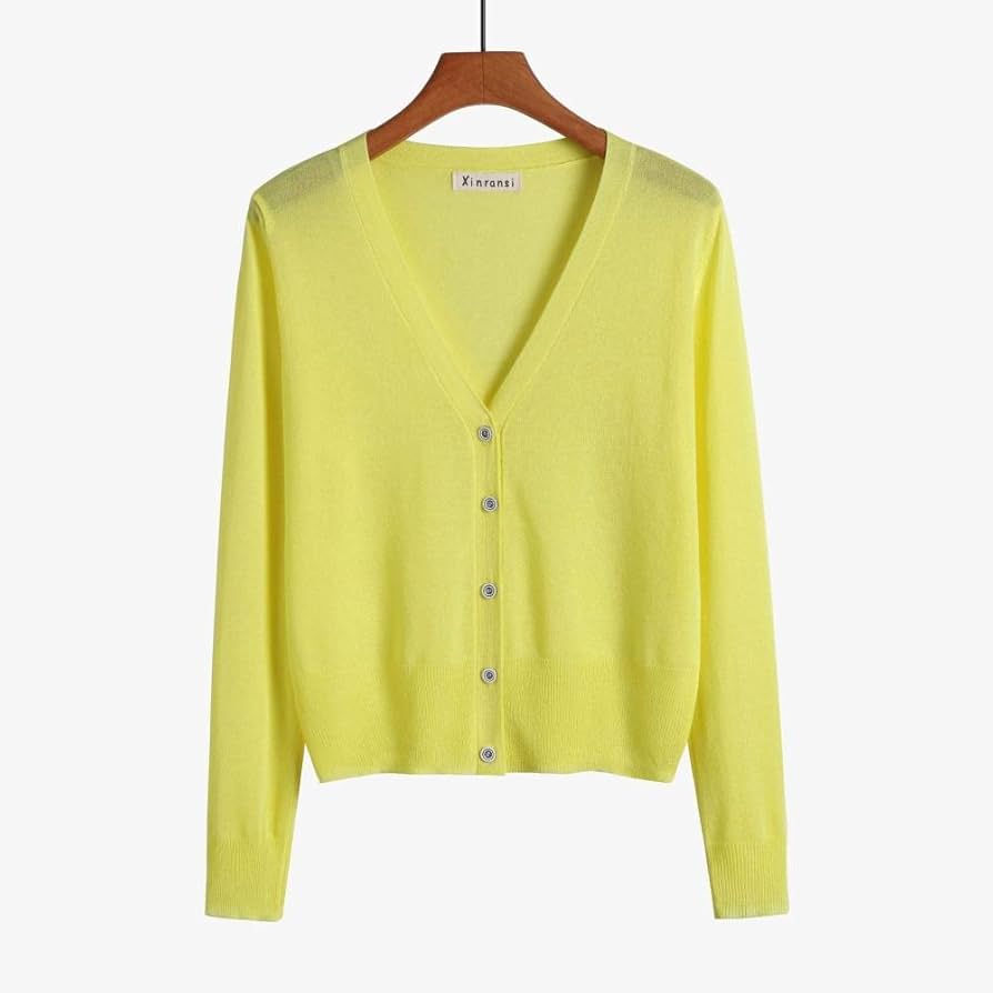 Strickjacke Damen,Gelb Ultraweiche, Schmal Geschnittene, Leichte Strickjacke, Dünne, Kurz Geschnittene Strickjacke, Kuscheliger, Langärmliger …