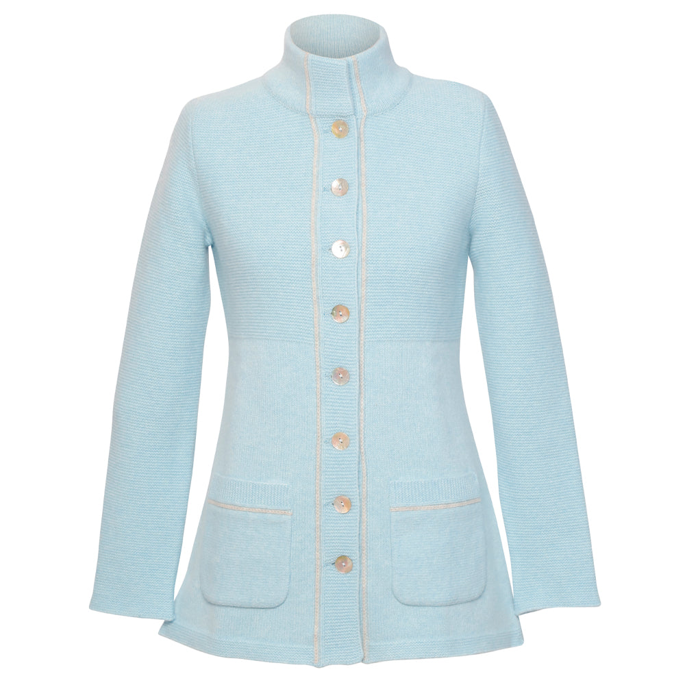 SALE Damenstrickjacke „Everyday“ 32 / helltürkis hellgrauer Streifen