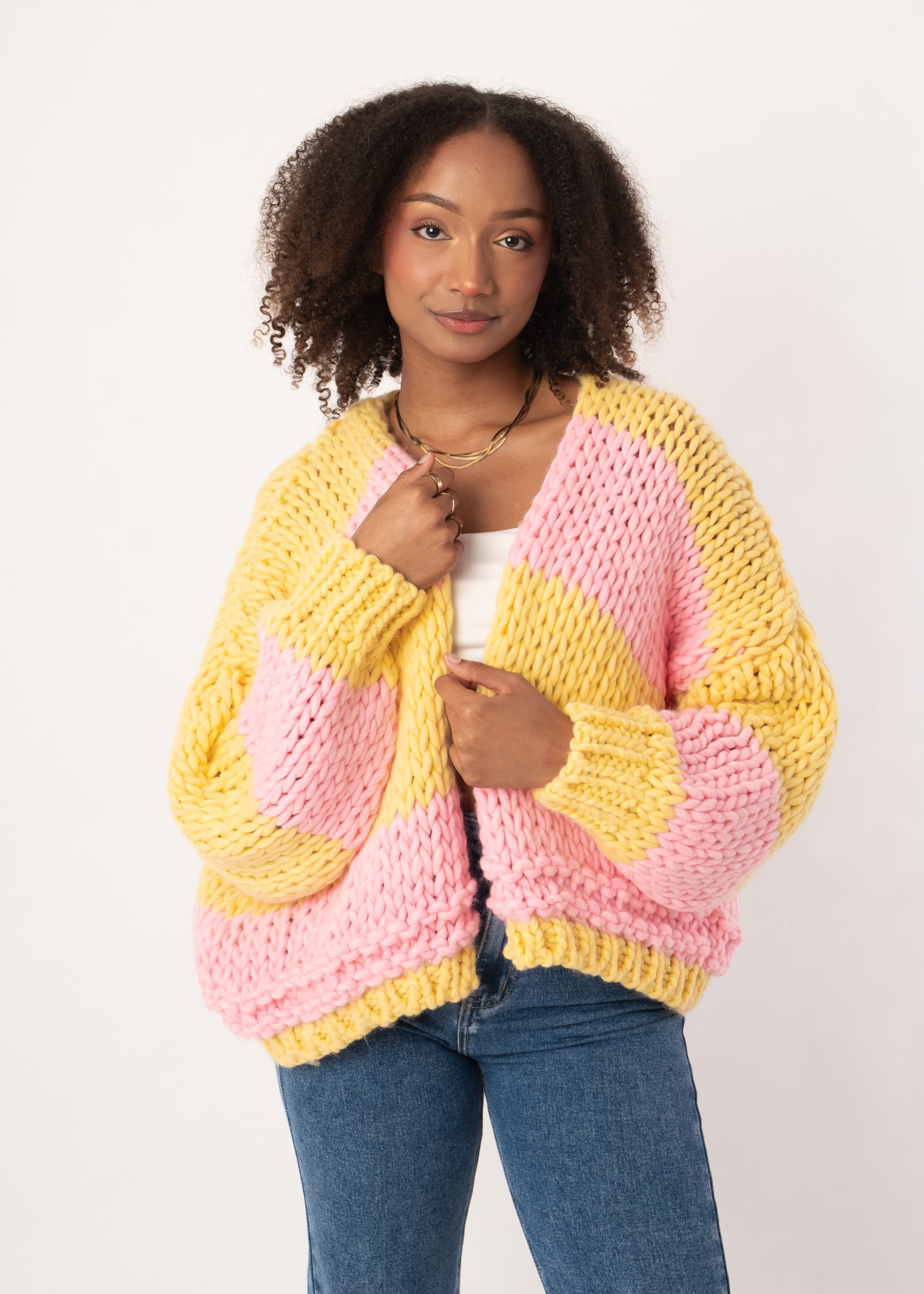 Chunky Knit Cardigan Gelb/Rosa One Size