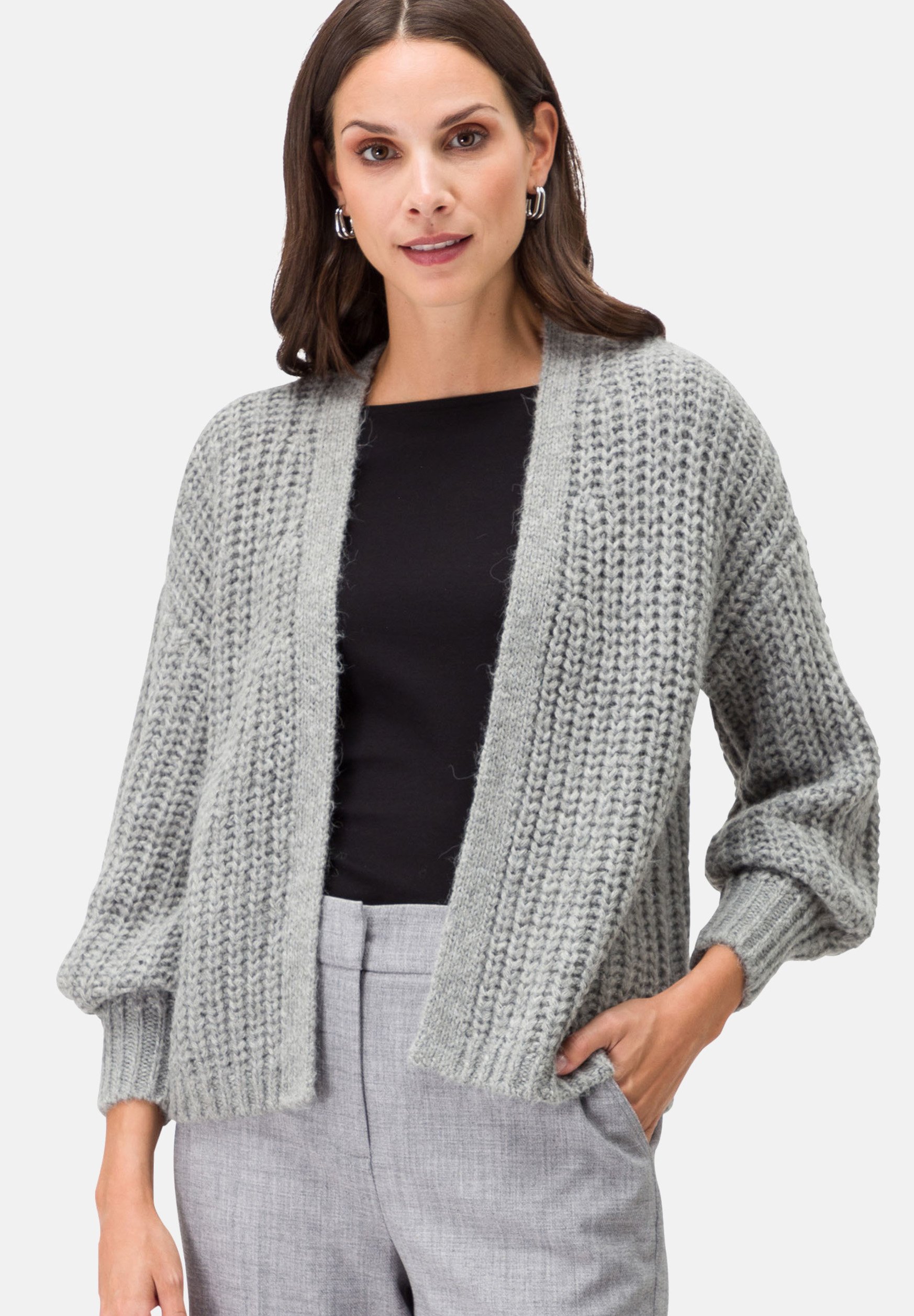 zero GROB OFFENER STYLE Strickjacke grey melange/grau Zalando