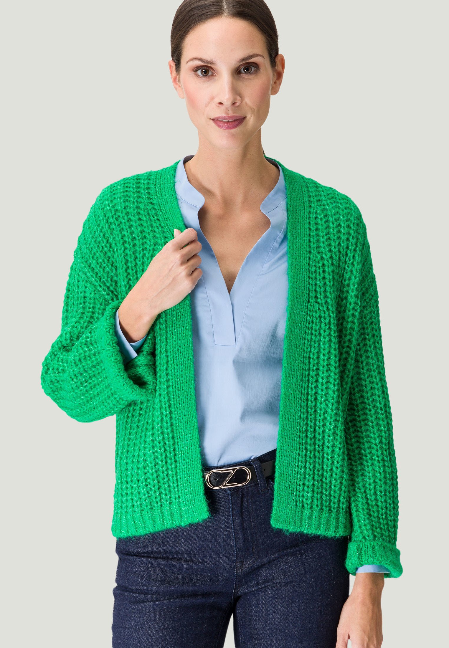 zero OFFENER STYLE Strickjacke middle green melange/grün Zalando
