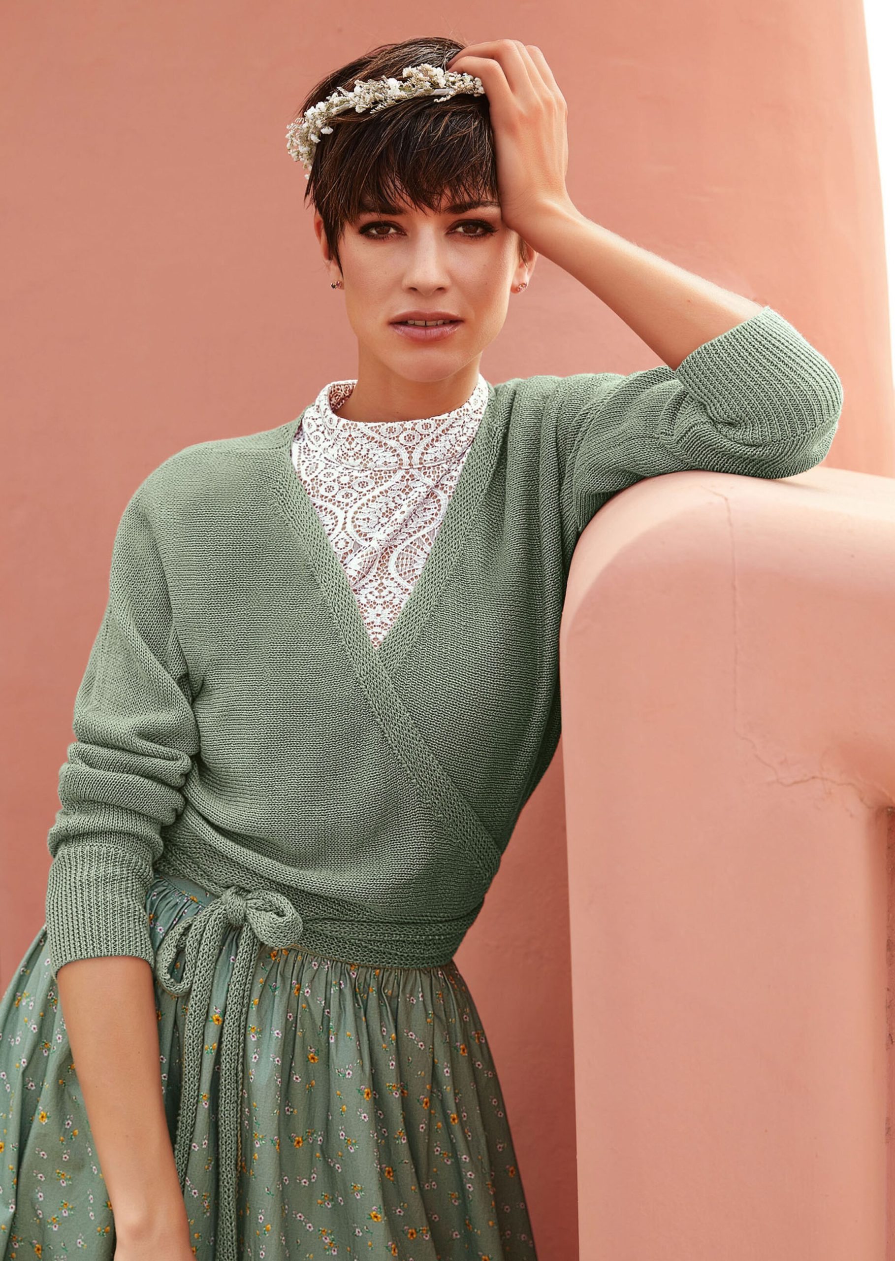 Kurze Strickjacke zum Wickeln in hellsalbeigrün | MADELEINE Mode