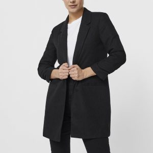 Longblazer Damen Schwarz Elegant Oversize Blazer Damen Lang Farbe Lange Ärmel Gefälschte Blazerjacke Tasche Lässig Blazer Dünneblazer Slim Fit …