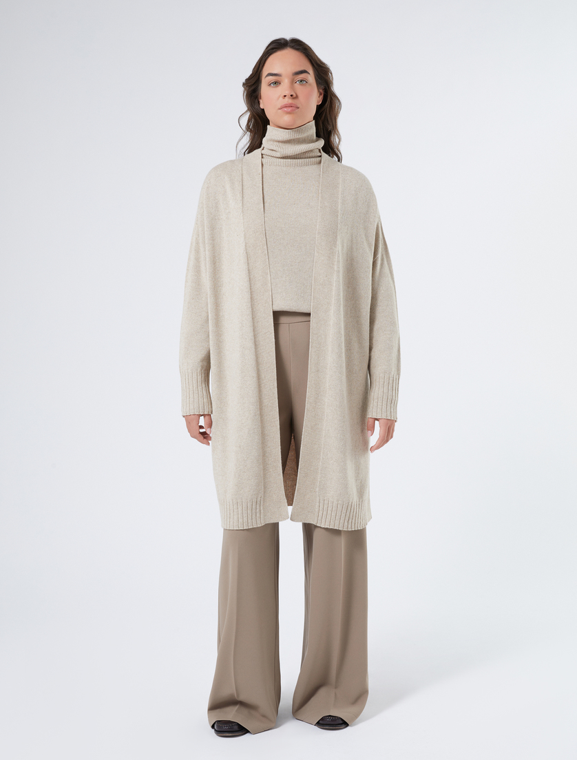 Longcardigan aus Kaschmirmischgewebe ELFENBEINFARBEN