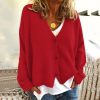 JIANGZ Strickjacke Damen,Modischer Einfarbiger Roter Cardigan Mit Rundhalsausschnitt Weicher Slim Fit Langarm Mantel Pullover Mit Offener Vorderseite …