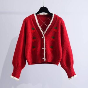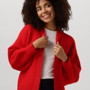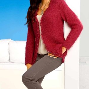 JIANGZ Strickjacke Damen,Modischer Einfarbiger Roter Cardigan Mit Rundhalsausschnitt Weicher Slim Fit Langarm Mantel Pullover Mit Offener Vorderseite …