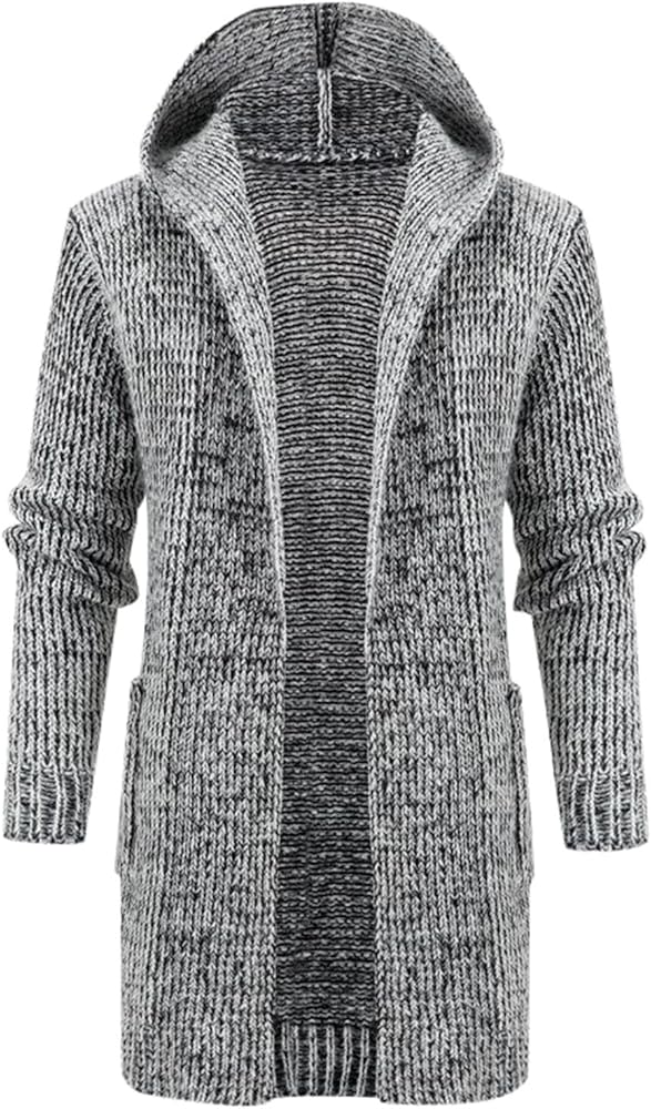 Rrongwn Herren Strickjacke Lang Mit Kapuze Jacke Lange Kapuzenjacke Bequeme Übergangsjacke Für Männer Open Edge Cardigan Strickjacke Mit Kapuze …