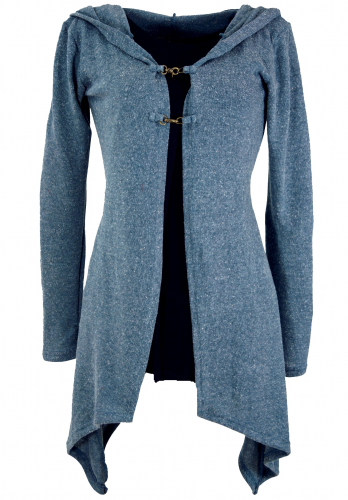 Lange Strickjacke, Strickmantel mit weiter Kapuze taubenblau