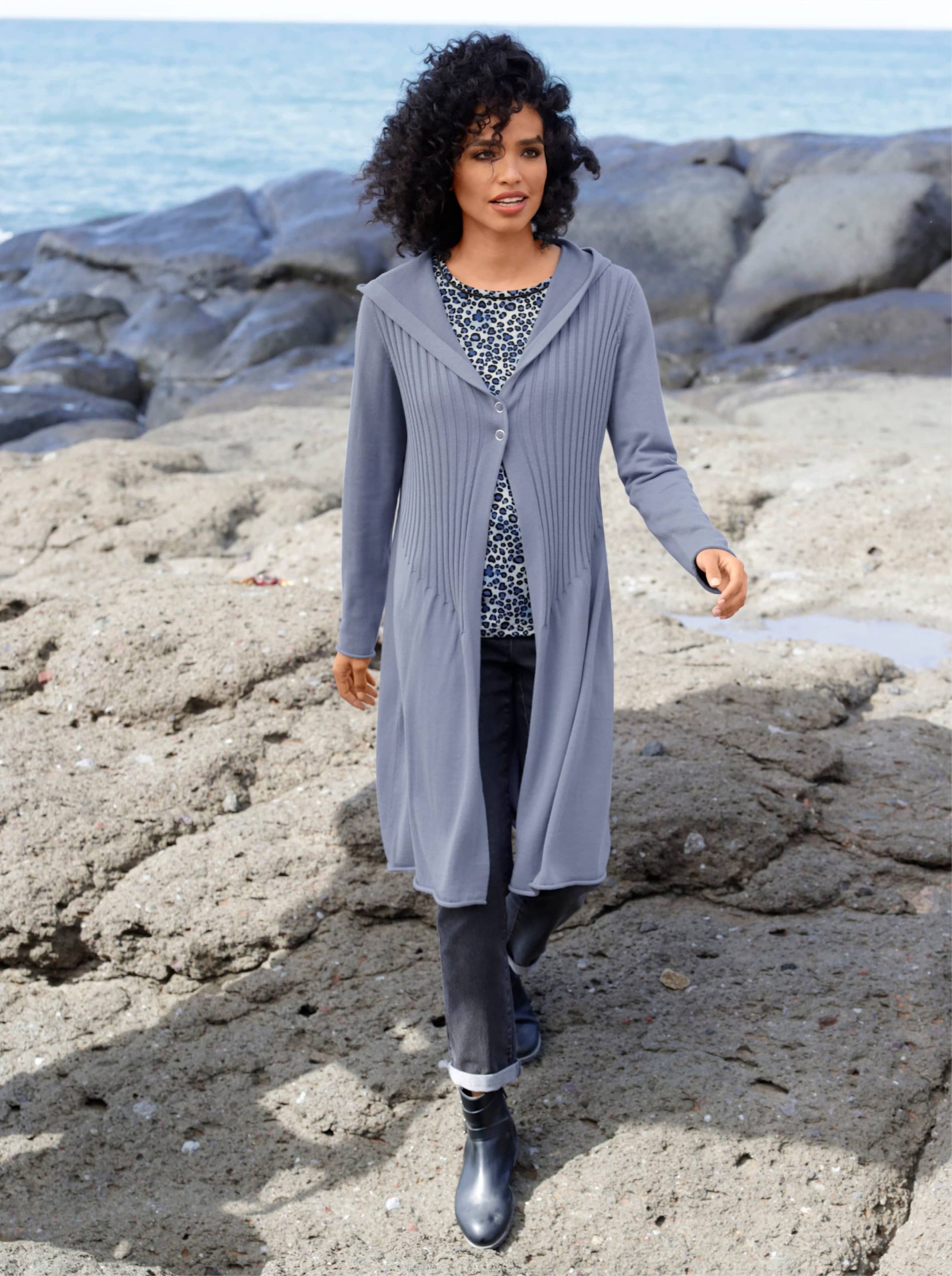 heine Strickmantel mit Kapuze in taubenblau | heine