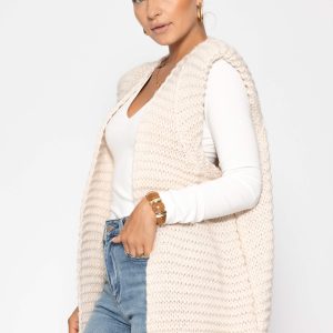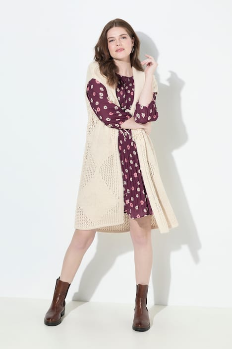 Strickweste, lang, oversized, offene Form, Rhomben, dunkles kitt | Happy Size