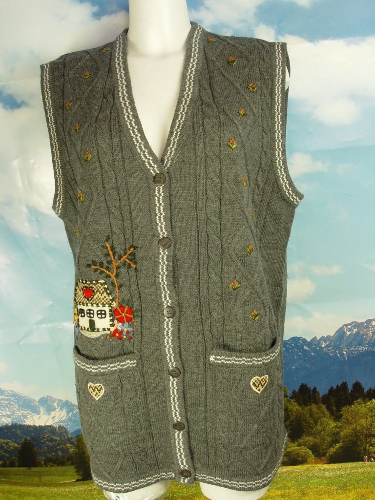 neuwertig sehr lange warme Strickweste Leibchen Weste 020 Trachtenweste Gr.44