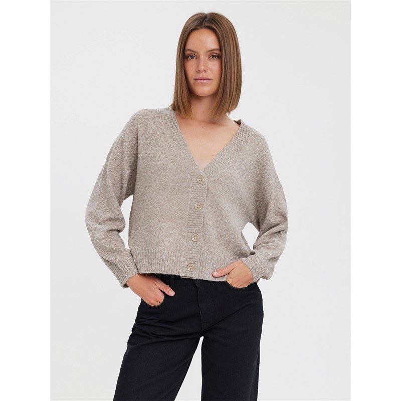 Vero Moda Damen V Ausschnitt Strickjacke mit Knöpfen Sepia Farbton